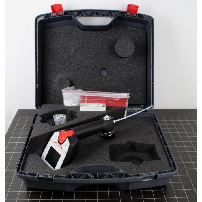 Scope of Supply: Portable density meter, filling tube, adapter for syringe filling, syringes, transportation case, rubber protection for measuring cell, three batteries, Allen key, instructions